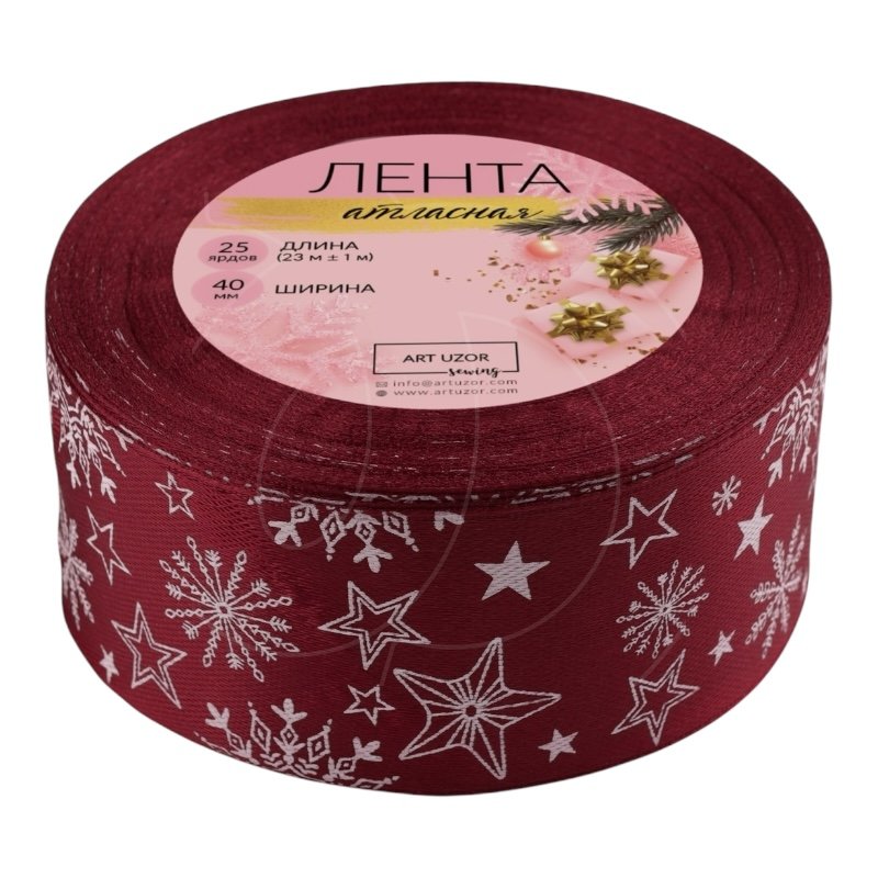 Доставка Лента для декора и упаковки Атласная Бордовая "Снежинки" 40 мм из магазина в вашем городе: